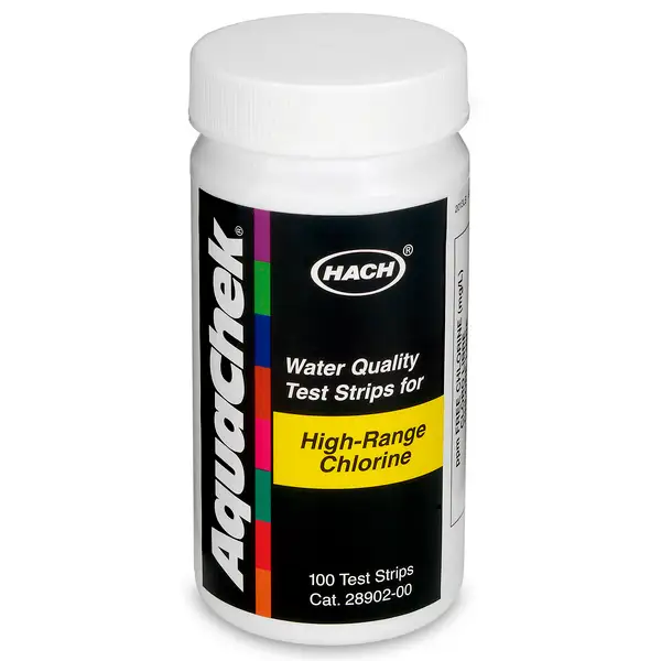 AquaCheck free chlorine 0-600 ppm, mg/L, are test strips for measuring active chlorine content. Tube with 100 test strips.