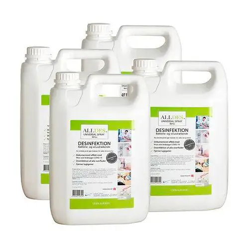 ALLDES er en effektiv og skånsom desinfektion i en praktisk 1-liters sprayflaske. Dræber 99,99% af bakterier, vira og svampe. Fri for alkohol, parfume og farve, pH-neutral og efterlader ingen kemiske rester. Velegnet til alle overflader, der tåler vand.