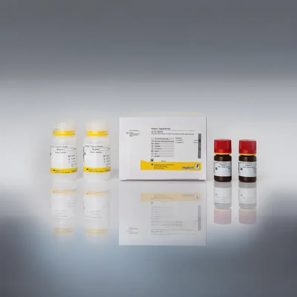 Enzytec Liquid Nitrate er et enzymatisk assay til bestemmelse af nitrat i fødevarer og andre materialer. Kittet indeholder ready-to-use reagenser til 2×25 tests. Detektionsgrænse: 0,80 mg/L. Kvantifikationsgrænse: 1,5 mg/L. Linearitet: 1,5 – 300 mg/L. Måles ved 340 nm.