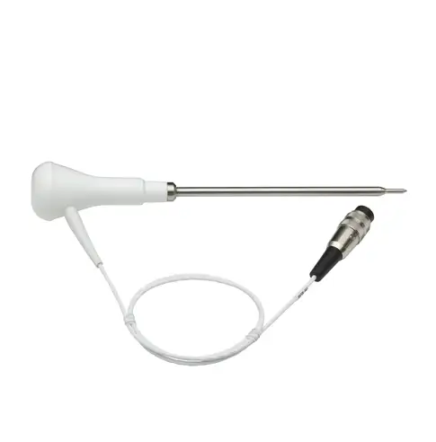 PX30L er en kraftig penetreringsprobe (termistor) med et 150 mm skaft, som ender i en 3,3 mm nålespids, hvilket gør den ideel til testning af sarte fødevarer. Den er udstyret med en 0,7 m ledning. Der er BioCote Antimicrobial Protection i håndtaget for at undgå risiko for krydskontaminering. Temperaturområde: -40°C til 150°C (-40°F til 302°F). Sensortype: Termistor.