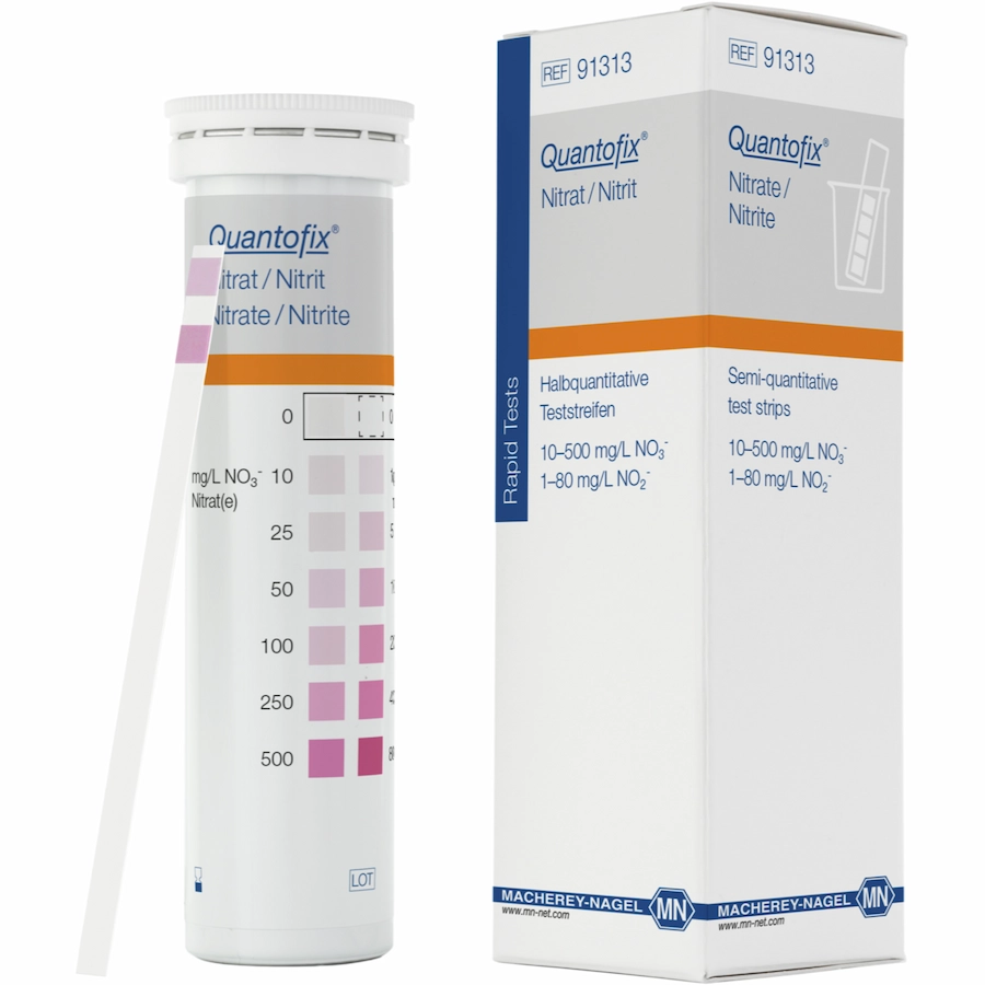 Teststrimler til nitrat og nitrit (0–500 mg/L). 100 stk. Hurtig og enkel analyse. Kompatibel med QUANTOFIX Relax.