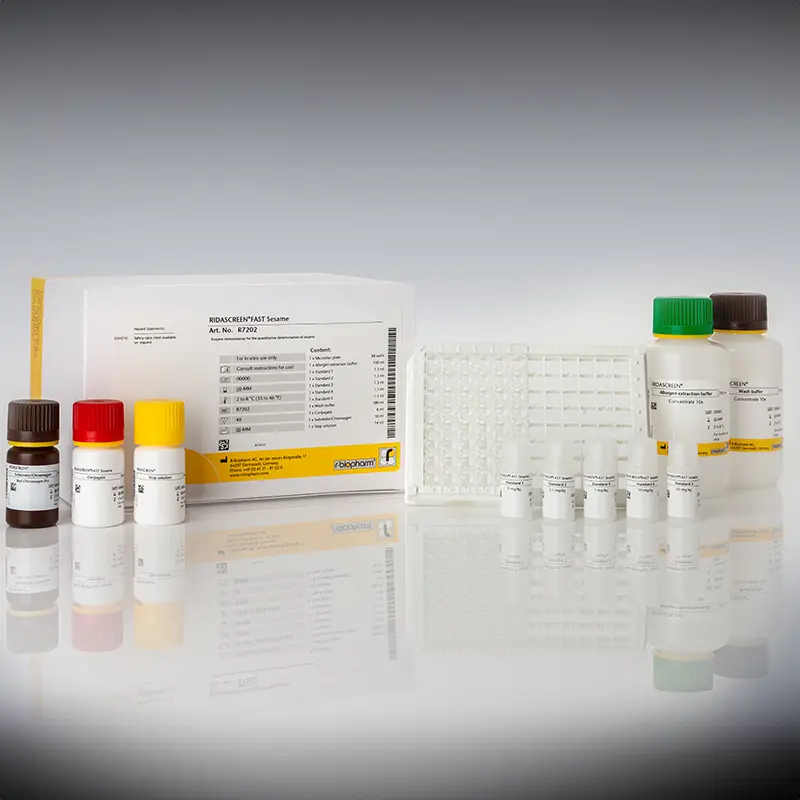 RIDASCREEN®FAST Sesame er et sandwich enzym immunoassay til kvantitativ analyse af sesam eller dele af sesam i eksempelvis pulversuppe, chokolade desserter, bagværk og kiks.