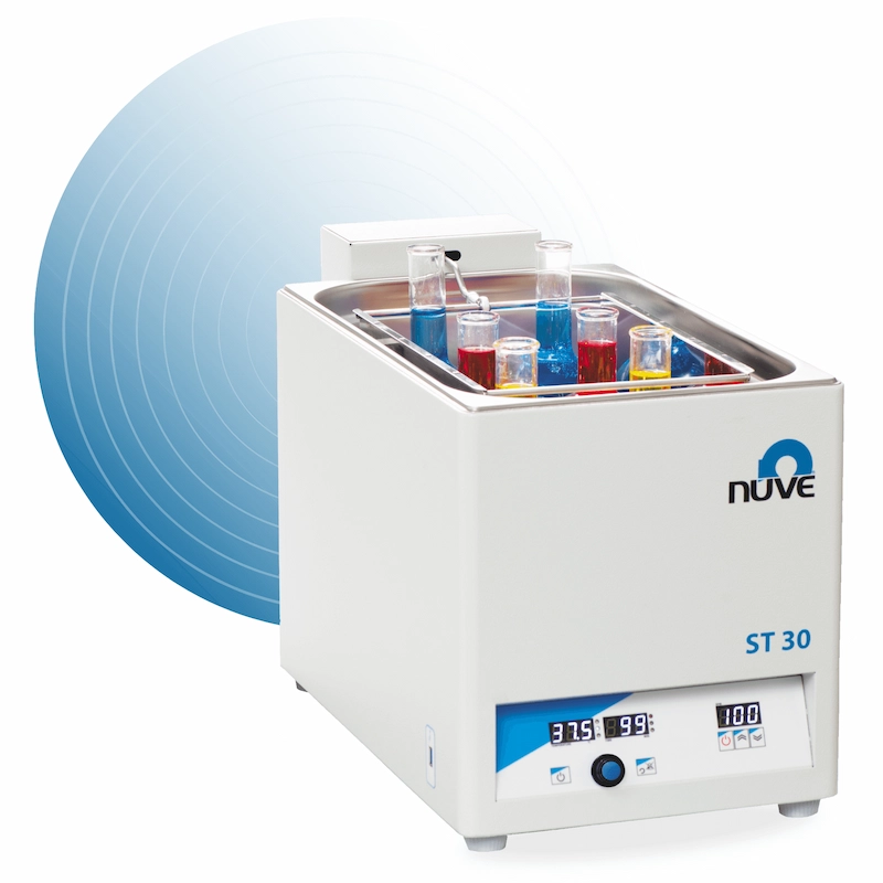 ST 30 rystevandbad er designet til præcise og reproducerbare rysteprocesser i laboratoriet. Med en kapacitet på 30 liter og temperaturområde fra omgivelsestemperatur +5 °C til 99,9 °C er det ideelt til vævskultur, bakterieinkubation, enzymreaktioner og fermentering.
