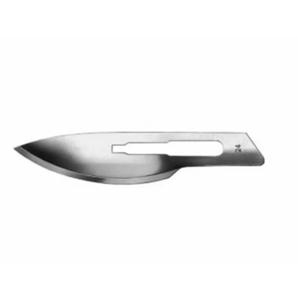 Sterile skalpelblade type nr. 24 fremstillet i rustfrit stål. Passer med skalpelskaft nr. 4.