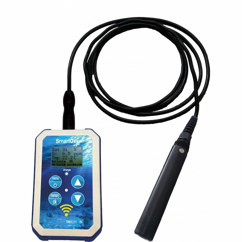 Med Smartoxy kan du samtidig se opløst ilt i både ppm og procent mætning, temperatur i °C samt pH (valgfrit). Data kan overføres direkte til en internetdatabase, og enheden har indbygget hukommelse til målinger, genopladeligt batteri med trådløs teknologi samt RFID-tag detektor.