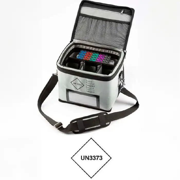 Vandtæt Isotherm taske til transport af prøver. 16L i farven Blå/Grå. Bærerem såvel som håndtag med netlomme til opbevaring af følgesedler mv. PE isolerende skum, 10mm. Udvendige dimensioner: 35 x 26 x 28cm. Vægt: 2,3 kg.