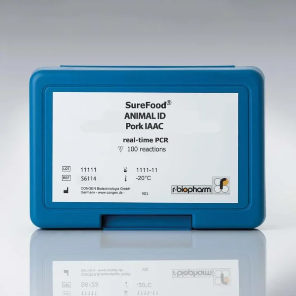 SureFood® ANIMAL ID Pork IAAC er et real-time PCR kit til screening for gris. Kittet indeholder intern kontrol og kræver et PCR instrument, der kan aflæse to farver samtidigt: