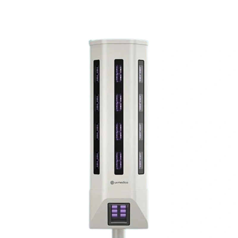 Vertex 222-modellen er designet til enten fastmontering eller som en bærbar enhed, hvilket gør det nemt at placere den strategisk i nøgleområder. Lamperne anvender strategisk placerede lyskilder for at sikre en ensartet fordeling af det desinficerende FAR (kortbølget)-UVC-lys. Uanset om den bruges alene i hjørner eller i kombination med andre UV222-løsninger fra UV Medico, tilbyder Vertex 222 en helhedsorienteret tilgang til at skabe sikrere og sundere miljøer.